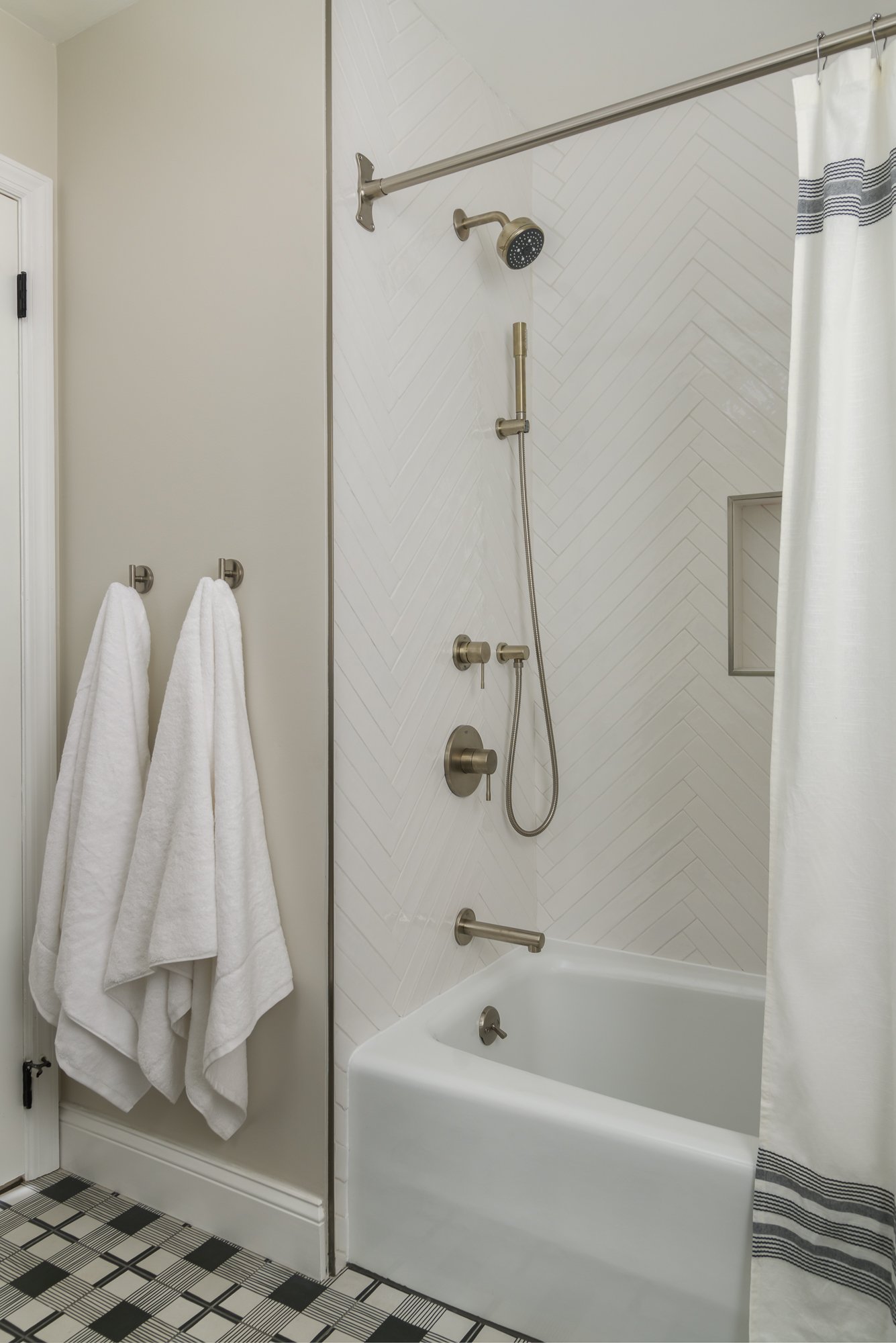 Returning clients are ready to tackle two main bathrooms and the living room of their 1970s family home.